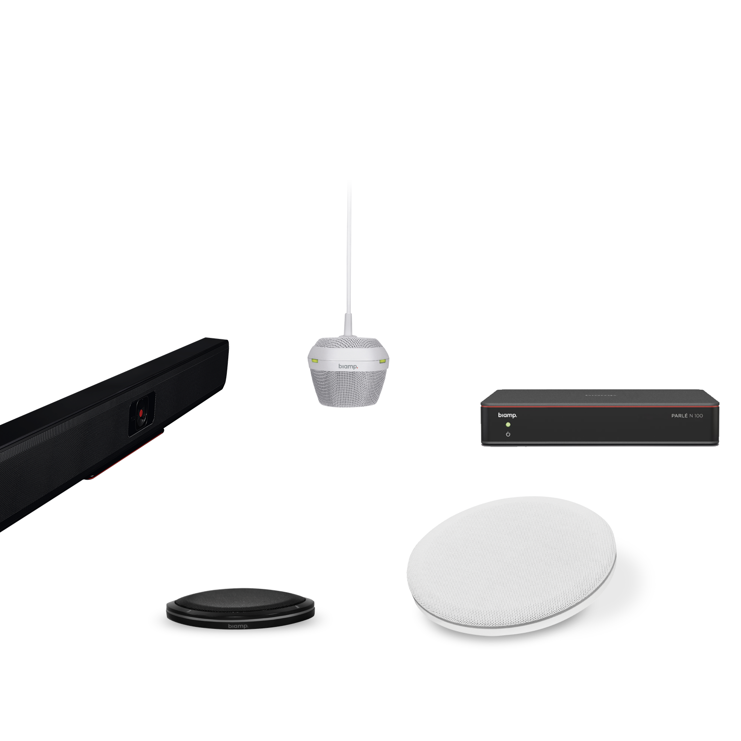 The Parlé lineup ensures every voice is heard through superior audio clarity and automatic voice tracking technology. Experience our most advanced microphone performance in ceilings, on tabletops, and in our industry-leading conferencing bars.