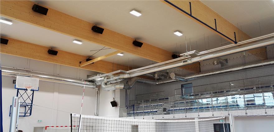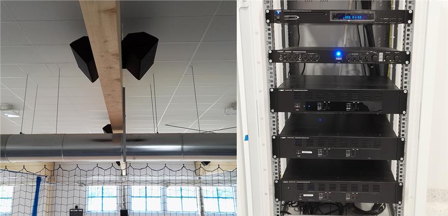Twenty MASK12T speakers were installed on the wooden ceiling, and three REVAMP4240T amplifiers  were used to power the loudspeakers. The PM7400MKII stereo preamplifier allows controlling the volume and a PC1000RMKII music player is used to play music files and CDs.
