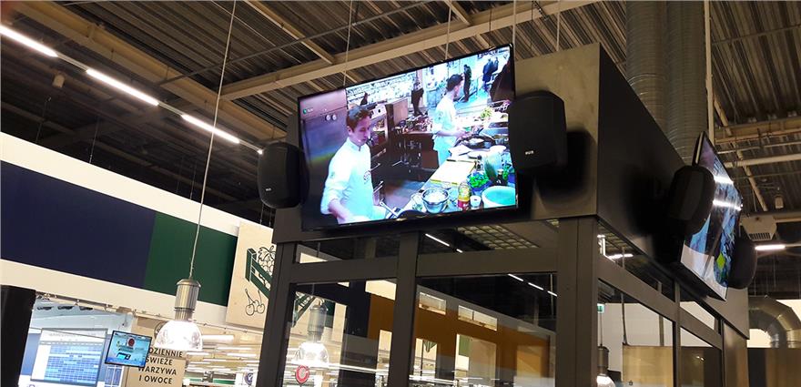 In the Makro Cash and Carry in Warsaw an audiovisual installation has been installed that allows Makro customers to view culinary presentations performed by the best chefs. At the opening party, it was possible to see how Mr Grzegorz Ćapanowski, known from the Top Chef television show, does cooking. After each presentation, one can of course try whether the prepared dishes taste just as good as they looked on the screen. In addition to culinary presentations, there are demonstrations performed in a food truck. Here, the AV installation also helps to take a closer look at the secrets of cooking.