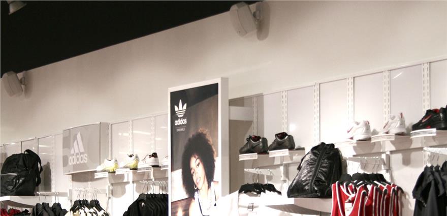 The installation in all shops is identical: a combination of MASK4 cabinet loudspeakers and SUBA165 subwoofers. It is the perfect combination for a sport shop, where powerful background music is necessary.