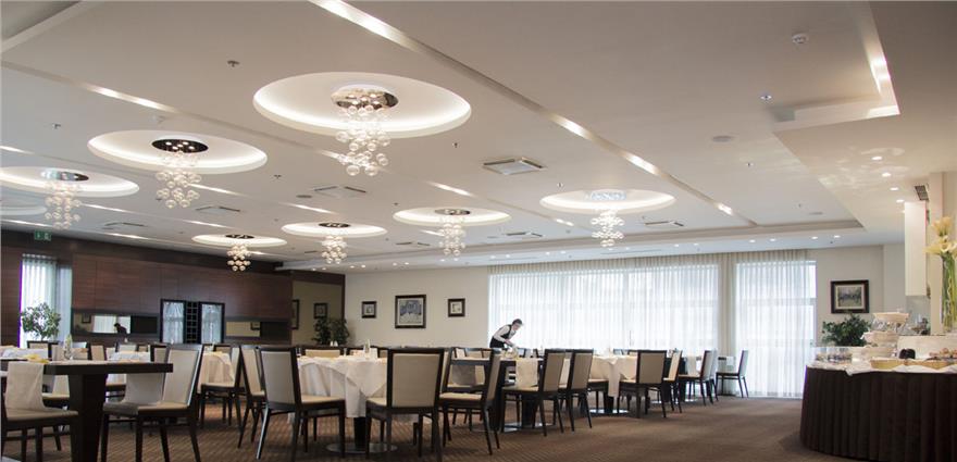 Hotel Aristos is done according to the wishes of investors who demanded superior standard to meet discreet design and very high functionality. The hotel is divided into several zones: reception with associated room corridors, restaurant, large conference room, four small meeting rooms and a wellness area. Reception with associated room corridors can chose music sources from the main sound system and each floor hallway can choose to attenuate the music level by itself, all the music is reproduced through CMX20T ceiling speakers.